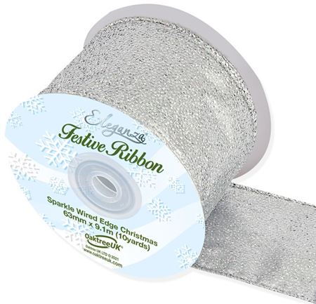 Sparkle Silver Ribbon Wired 63mmx9.1m